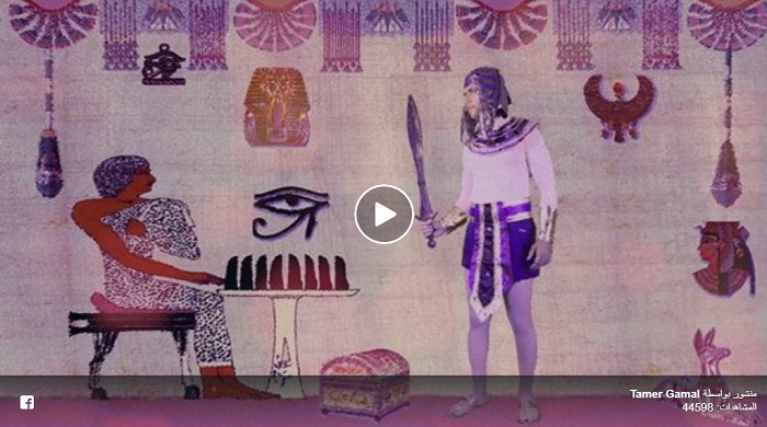 وقام الفنان عطوة كنانة في دور الفرعون الذي يعاتب المصريين على التفريط في ثرواتهم، ومن بينها الأرض بعدما تنازل السيسي عن جزيرتي تيران وصنافير، فضلا عن تهريب آثار مصر للخارج، بعدما عين السيسي نفسه رئيس المجلس الأعلى للآثار، وإغلاق الكاميرات عن المتحف المصري وتهريب عددد كبير من الآثار ثم انقطاع الكهرباء عن مطار القاهرة، ثم إعلان وزارة الآثار باختفاء 33 ألف قطعة أثرية عن مصر، ثم تعلن الإمارات فتح متحف اللوفر وعرض قطع أثرية فريدية من نوعها.