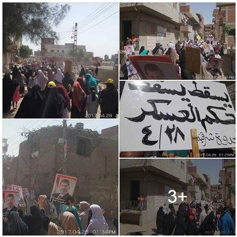 كما نظم أبناء الشهداء والمعتقلين بمنيا القمح وقفات وسلاسل بشرية عقب صلاة الجمعة من العزازية تطالب بإجلاء مصير المختفين قسريا والإفراج عن المعتقلين والقصاص لدماء الشهداء ووقف الانتهاكات والجرائم التى لا تسقط بالتقادم ومحاكمة كل المتورطين فيها والتى كان آخره جريمة القتل عبر الاهمال الطبى للمهندس السيد عبدالخالق زهران من أحرار مدينة القرين والذى ارتقى شهيدا أمس بسجن المنيا العمومى.