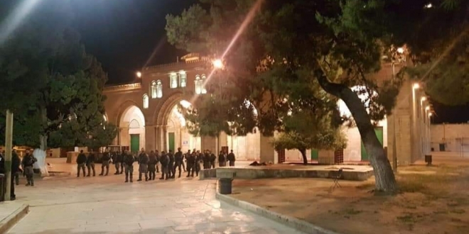 اقتحمت قوات الاحتلال الصهيوني، الليلة، المسجد الأقصى المبارك من جهة باب المغاربة، وأخرجت المصلين والمعتكفين فيه بالقوة؛ وذلك بعد أن شهد المسجد أداء آلاف المواطنين صلاتي العشاء والتراويح.