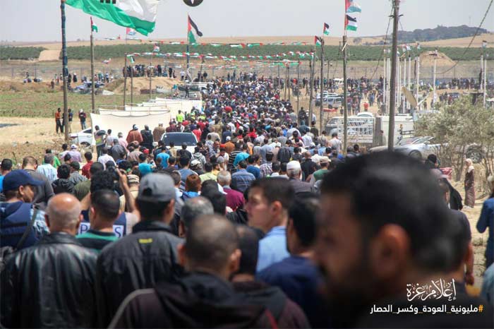 وأفاد شهود عيان بأن جنود الاحتلال الذين يتمركزون خلف التلال والكثبان الرملية وداخل آلياتهم العسكرية المنتشرة على طول السلك الفاصل، فتحوا النار وأطلقوا وابلاً كثيفاً من قنابل الغاز المسيل للدموع تجاه مئات المواطنين الذين بدأوا يتوافدون إلى عدد من المناطق شرق القطاع للمشاركة في المسيرات السلمية لإحياء الذكرى الـ71 للنكبة، ما أدى إلى إصابة عدد منهم بحالات اختناق.