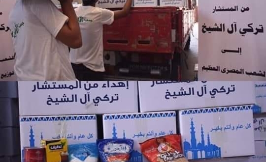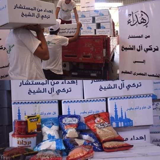 فرغم أن جمعية الأورمان التي يرأسها علي جمعة مفتي العسكر، هي من أوكلها “آل الشيخ” بتقديم “إحسانه” للمصريين إلا أنه أصر على وضع اسمه على الكرتونة التي تتضمن سلعا غذائية!!
