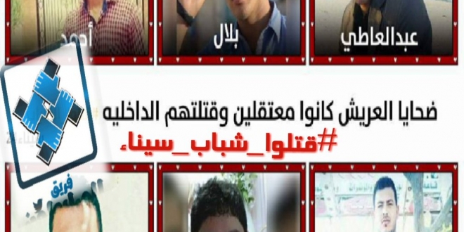 كذلك وثقت منظمة “هيومن رايتس ووتش” في تقريرها الأخير عن سيناء “حالات اختفاء قسري، وارتكاب تعذيب وقتل خارج نطاق القضاء”، وأشارت إلى عمليات قتل للمختفين خصوصًا في العريش بدعاوى محاربة الإرهاب بينما هم أبرياء، وأنه منذ يناير 2014 حتى يونيو 2018، قُتل 3,076 مسلحا مزعوما و1,226 من أفراد وضباط الجيش والشرطة.