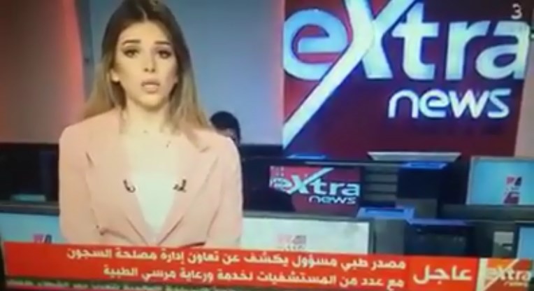 ويظهر مقطع الفيديو مذيعة قناة “سي بي سي أكسترا” وهي تقدم نشرة الأخبار وتقرأ تعليمات المخابرات التي تم تعميمها على ميع القنوات حول قضية استشهاد الرئيس مرسي.