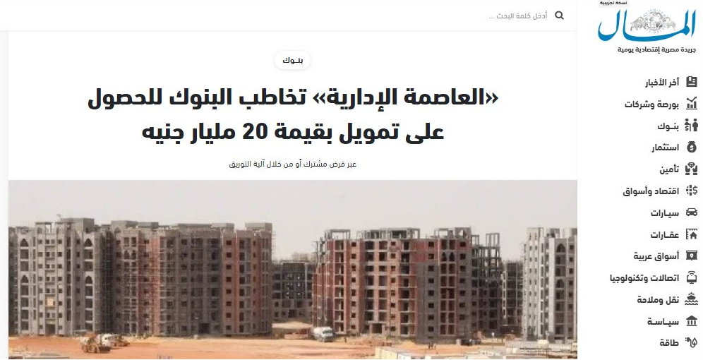 ونشرت صحيفة (المال) الخبر وقالت إن الشركة بدأت فعليا محادثات مع عدد واسع من البنوك المحلية بغرض الحصول على تمويل بقيمة تصل إلى 20 مليار جنيه، لمقابلة أعمال المرافق والبنية التحتية واستثماراتها المختلفة التي تباشر تنفيذها بالعاصمة الجديدة شرق القاهرة.