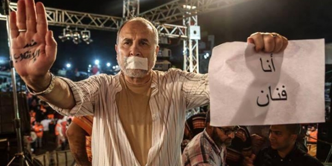 وتعاملت سلطات الانقلاب مع الفنانين المنتمين للإخوان إما بالاعتقال أو بالقتل، حيث اعتقلت سلطات الانقلاب معيدًا بكلية الفنون الجميلة، وهو مهندس وفنان، في نوفمبر 2013، إلا أنه وقبل إخلاء سبيله في يوليو 2014، حصل على الماجستير داخل معتقله.