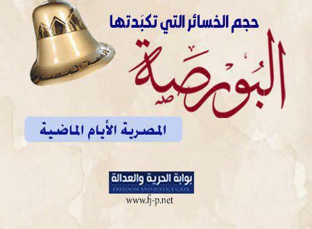 شهدت البورصة خلال الأيام الأخيرة الماضية خسائر فادحة بلغت 64 مليار جنيه، وذلك إثر مخاوف المستثمرين من المظاهرات التي انطلقت وتزايدت بصورة كبيرة، بعد أن فضح مقاول الجيش محمد على، إهدار قائد الانقلاب عبد الفتاح السيسى عشرات المليارات لإنشاء القصور الرئاسية.. والتفاصيل فى الجراف التالى: