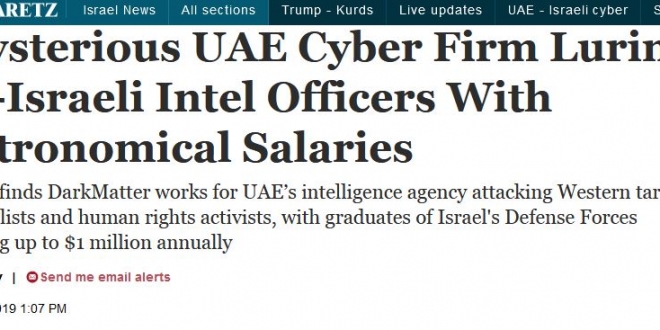 قالت صحيفة “هآرتس” العبرية، إن شركة أمنية إماراتية تستدرج ضباطًا سابقين في الاستخبارات الصهيونية للعمل لديها برواتب فلكية تصل الى مليون دولار سنويًّا.