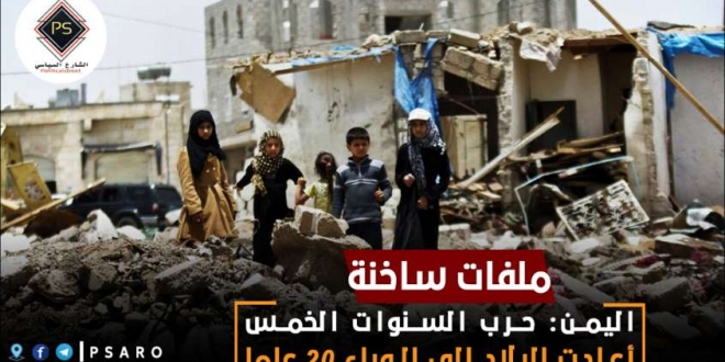 ضمن بحوث ودراسات موقع "الشارع السياسي"، تناولت دراسة بعنوان "اليمن: حرب السنوات الخمس أعادت البلاد إلى الوراء 20 عاما"، الآثار التدميرية التي نتجت عن الانقلاب الحوثي في اليمن وتدخل التحالف السعودي الإماراتي في الشؤون اليمنية بتفتيت المفتت.