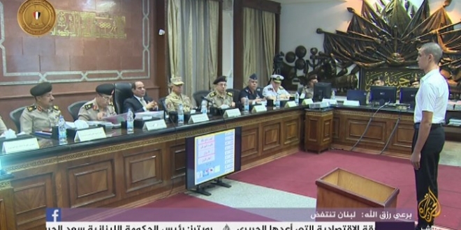 وصرّح السفير بسام راضي، المتحدّث باسم رئاسة الجمهورية المغتصبة، بأنّ السيسي ناقش خلال متابعته لإجراءات اختبارات الهيئة عددًا من الطلبة المتقدمين في بعض القضايا والموضوعات التي تُدار على الساحتين الداخلية والخارجية، بالإضافة إلى بعض المعلومات العامة عن تاريخ مصر وما شهدته من نهضة تنموية في مختلف المجالات.