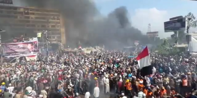 وكان هذا تمهيدًا لمذبحة كبيرة وموجة من القمع تتبعها، سعى السيسي لها من خلال محاولة خلق تجمع جماهيري لتبدو قراراته كأن لها قاعدة من الدعم الاجتماعي للجرائم القادمة، وينشر المسئولية عن القتل والقمع بين الجماهير، لتبدو عملية “قمع مجتمعي” بمشاركة جماهيرية.