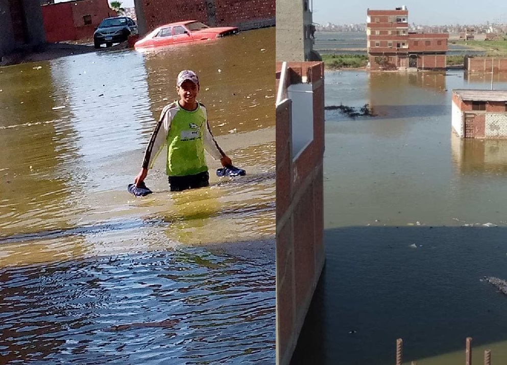 وأشار نشطاء إلى أن المياه هي مياه بحيرة المنزلة، وليست خاصة بالصرف الصحي، التي ارتفع منسوبها بعد تهدُّم جسر يحجز مياه بحيرة المنزلة واجتياح مياه البحيرة للقرى.