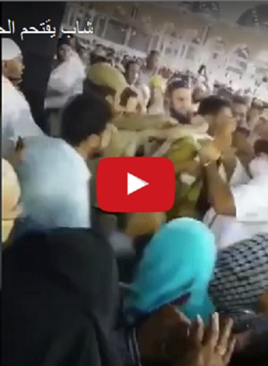 وتداول نشطاء الشبكات الاجتماعية، مقطع فيديو تظهر فيه قوات الأمن السعودية وهي تقبض على معتمر داخل صحن المطاف بالمسجد الحرام، فجر الثلاثاء، حيث كان يقف بجوار الكعبة المشرفة.