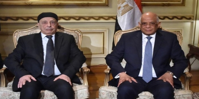 في مخالفات عدة لبروتوكولات المجالس التشريعية، وفي تغييب للوعي الجمعي للشعب المصري، استضاف برلمان علي عبدالعال رئيس "مجلس النواب" بطبرق عقيلة صالح ليزعم أنه "قد يضطر إلى دعوة الجيش المصري للتدخل في ليبيا" متناسيًا الواقع الذي يعزو وجوده في طبرق وبنغازي إلى القوات المصرية التي احتلتها لصالح محمد بن زايد ورغبته في تولية حليفة حفتر وعقيلة وعارف النايض أمور الانقلاب في ليبيا للسيطرة على ثرواته.