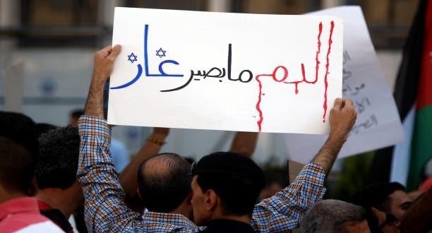 واحتشد مئات الأردنيين، عقب صلاة الجمعة الماضية، أمام المسجد الحسيني بقلب العاصمة عمان؛ احتجاجا على استيراد الغاز من إسرائيل وفق اتفاق بقيمة 10 مليارات دولار بدأ تنفيذها منذ أسبوعين، وتستمر لمدة 15 عاما، وهتف المشاركون “تسقط اتفاقية العار”، و”التطبيع خيانة” إضافة إلى “اللي طبع واللي خان باع القدس مع عمان”.