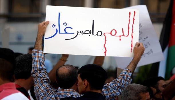 “اللي طبع واللي خان باع القدس مع عمان”، بهذا الهتاف استهل مئات الأردنيين احتجاجاتهم عقب صلاة الجمعة من أمام المسجد الحسيني بوسط العاصمة عمّان، مطالبين بإلغاء اتفاق بقيمة 10 مليارات دولار بدأ الأردن بموجبه قبل نحو أسبوعين بالتزود بغاز من إسرائيل ولمدة 15 عاما.