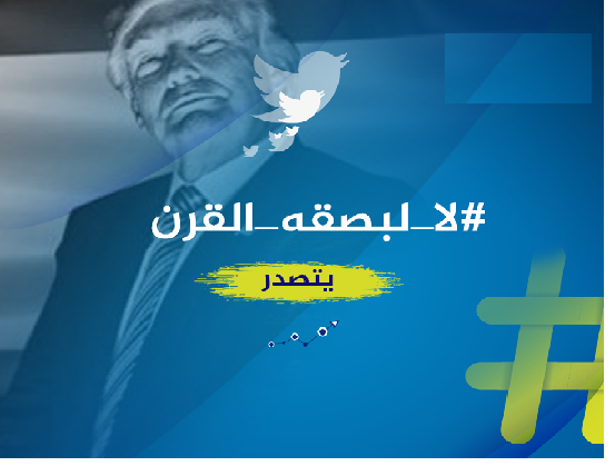 تصدر هاشتاج “#لا_لبصقة_القرن” تريند موقع التواصل الاجتماعي “تويتر”، بالتزامن مع الإجراء الذى سيتخذه الرئيس الأمريكي دونالد ترامب، بإعلان تفاصيل “صفقة القرن” المزعومة.