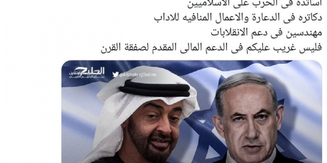بعد غدرها بفلسطين فضلا عن غدرها بمصر واليمن وليبيا، تصدَّر هاشتاج #كلمة_لحكام_الامارات التي تقود حربًا ضد الإسلام والمسلمين، وتتوج علاقتها مع الصهاينة بدعم صفقة القرن، التي يعتبرها المنحازون لقضيتهم “وعد بلفور” من أجل تقنين احتلال جديد، بالمخالفة للقوانين الدولية التي وضعوها بأنفسهم.