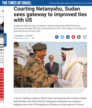وقالت صحف عبرية منها "تايمز أوف إسرائيل" و"واشنطن بوست" نقلا عن مسئول عسكري سوداني: إن لقاء البرهان مع نتنياهو بأوغندا رتبت له الإمارات بمعرفة السعودية ومصر.