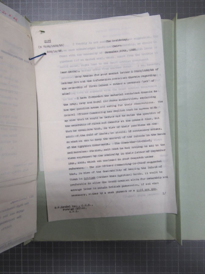 Digging up Tiran related documents from the British National Archives, and guess what I found? quid pro quo! 🙂#تيران_وصنافير_مصرية pic.twitter.com/lhLqpdxBwC