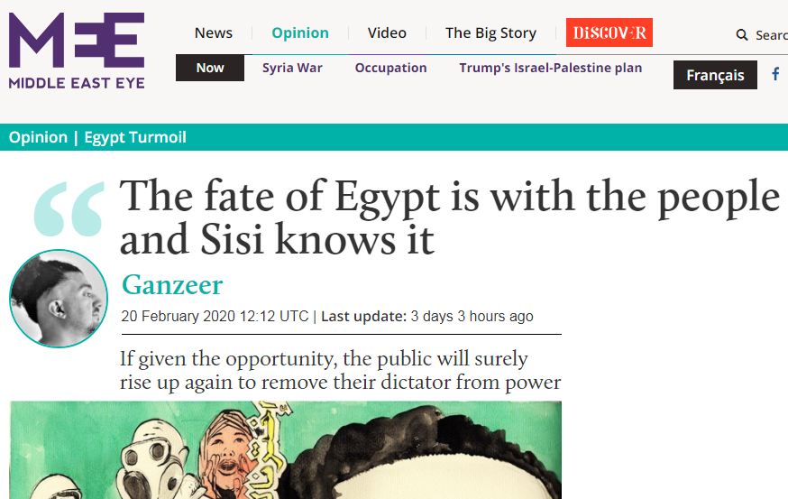 قال “جنزير”، وهو يكتب للموقع البريطاني “ميدل إيست آي”: إن واقعًا من معالجة اليأس الذي دب في النفوس من عدم رغبة الشعب في الثورة، وإن مداها بعيد، وإن المعارضين المصريين في ذكرى تنحي مبارك التي ما تزال في شهرها، أن “شعبنا قادر على صنع التغيير دائما”، في الوقت نفسه كان آخر النماذج الشعبية محمد علي الذي قال إن “مصر ستشهد ثورة عارمة والسيسي مرتبك وخائف”.