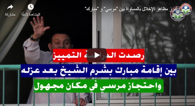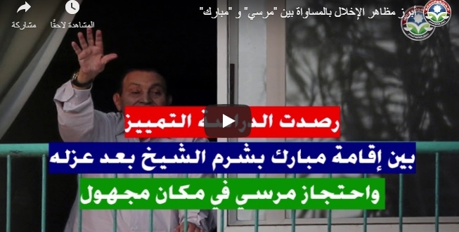 أطلقت الشبكة العربية لمعلومات حقوق الإنسان، ورقة موقفٍ توضح التمييز الشديد الذي أبدته أجهزة الانقلاب في التعامل بين رئيسي مصر الراحلين محمد مرسي وحسني مبارك، وأكدت الإخلال الواضح بمبدأ المساواة أمام القانون بغض النظر عن الموقف السياسي تجاه أي منهما.
