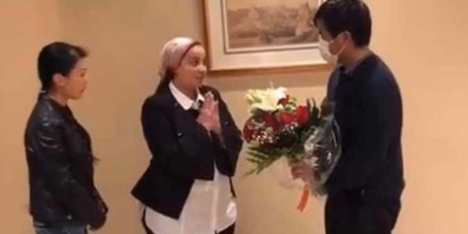 وفي مقطع فيديو قالت له فتاة مصرية مقدمة له باقة من الورود: “نعتذر لك عن هذا الفعل، وهذا ليس من عادتنا، ونتمنى لك إقامة سعيدة في مصر”.