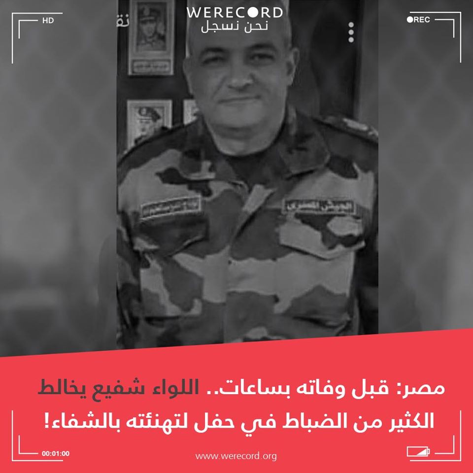 ونقل الفريق عن مصادر قولها، إنه “خلال الحفل خالط اللواء العديد من الضباط بشكل مباشر قبل أن يقتله الفيروس، ويتبين من جديد سوء الخدمات الطبية والاستهتار الرسمي بحياة أفراد وقيادات القوات المسلحة ومن قبلهم الشعب المصري”، متسائلا: “من سيتحمل الكارثة العظمى بتفشي الفيروس داخل القوات المسلحة المصرية؟!””.