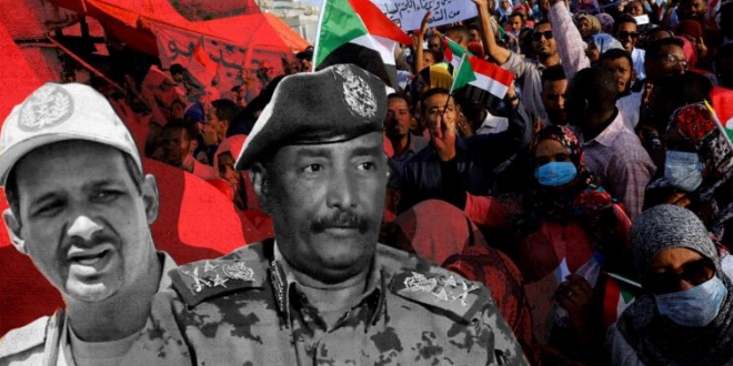 وتشبه بدايات ثورة السودان ما جرى في مصر، إذ شهدت الخرطوم قبل عام انتفاضة شعبية واعتصامات جماهيرية تشبه إلى حد كبير ما وقع في القاهرة عام 2011 بميدان التحرير والمحافظات المصرية، ولاحقا استجابت قيادة الجيش للتطلعات الجماهيرية لتعزل رئيس النظام السوداني مثل ما جرى من قبل في القاهرة، ومن ثم قامت بتشكيل مجلس عسكري لإدارة البلاد.