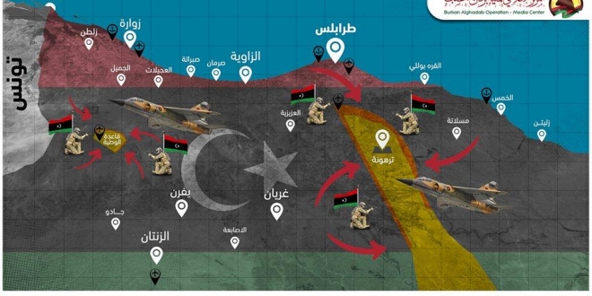 فقد كشف آمر اللواء الأول مشاة، المقدم مصطفى المجدوب، أن قوات الجيش الليبي التابع لحكومة الوفاق تستعد لشن هجوم كبير للسيطرة على محاور جنوب طرابلس ومدينة ترهونة، آخر معاقل اللواء المتقاعد خليفة حفتر غرب ليبيا.