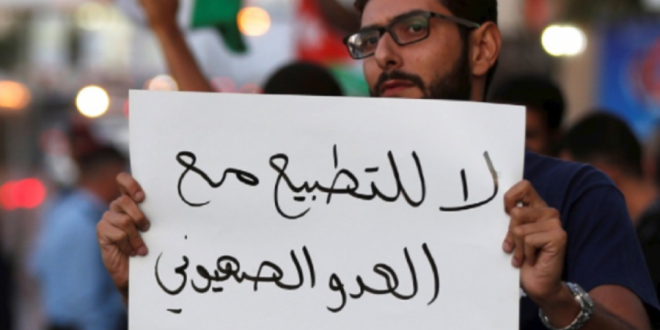 النشطاء أكدوا فى تغريداتهم أنهم يرفضون الأمر برمته، وأنهم يواصلون الضغط من أجل إحياء القضية الفلسطينية، حيث كتب “يمانى”: “لن نطبع مع الصهاينة ولو تصهين كل زعماء العرب.. فلسطين في قلب كل عربي حر.. ألا لعنة الله على كل عربي متصهين أو مطبع”.