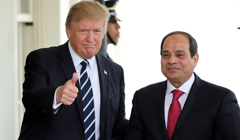 وفي الشهر التالي، جلس هو والسيسي معا في الأمم المتحدة وقال ترامب، "إنه لشرف لي أن أكون مع صديقي وهو قائد حقيقي، وحين سأل أحد المراسلين "ترامب": "هل أنت قلق من المتظاهرين في مصر الذين كانوا يطالبون السيسي بالرحيل؟" أجاب ترامب: "لا، أعتقد أن كل شخص لديه مظاهرات، لست مهتمًا بذلك مصر لديها زعيم عظيم"!.