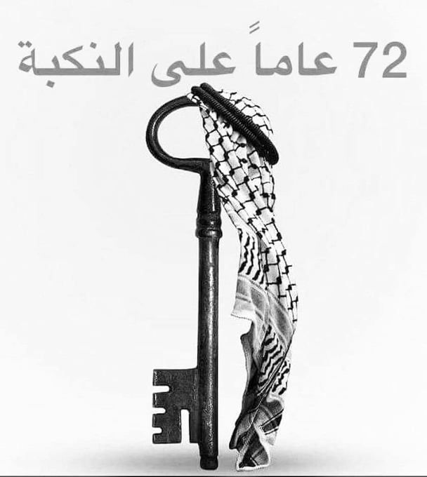 بما إنه بكرة ذكرى النكبة الفلسطينية ال72 اللي تهجّروا فيها أجدادنا وتشرّدوا بأبشع المجازر وأقذر الطرق على إيد العصابات الصهيونية، إحنا اللاجئين بالشتات متمسكين بحقنا للعودة وبنتنازلش عنه🇵🇸✌🏻.