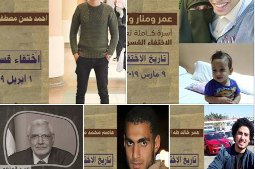 وذكرت أن قوات أمن الانقلاب اعتقلتهم من محل إقامتهم بالإسكندرية يوم ٩ مارس ٢٠١٩ واقتادتهم لجهة غير معلومة حتى الآن.