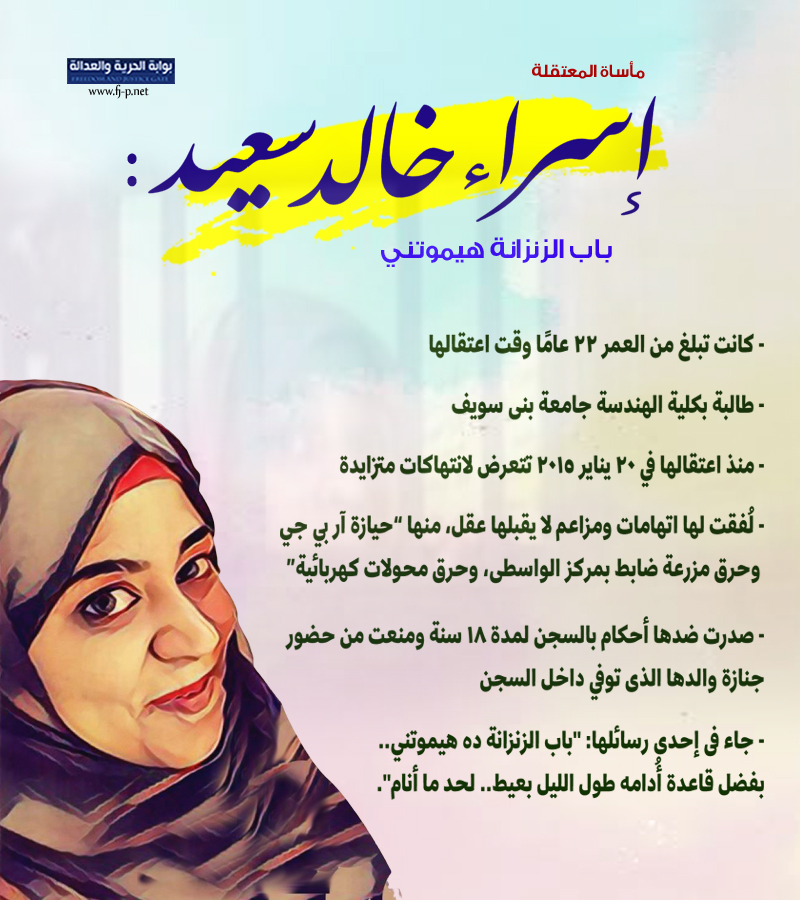تعتبر المعتقلة إسراء خالد سعيد نموذجا للمعتقلات في سجون الانقلاب اللاتي وصل عددهن إلى 165 في أحدث إحصاء لحركة “نساء ضد الانقلاب”.