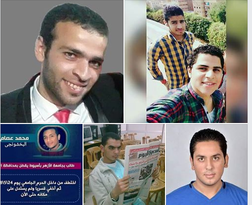 ومن الأقصر، جددت أسرة الشاب محمد عصام الدين عبد الرازق، مطلبها بالكشف عن مكان احتجازه المجهولة منذ اعتقاله من حرم جامعة الأزهر بأسيوط يوم الخميس 24 مايو 2018 واقتياده لجهة مجهولة حتى الآن