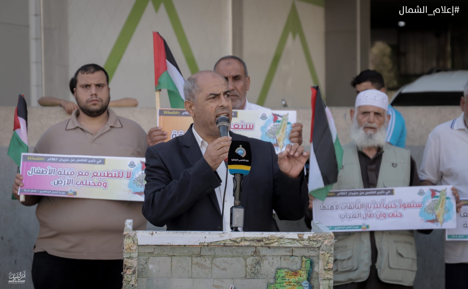 وأضافت الحركة: "فلا هو التزم للمجتمع الدولي بما تعهد أمامه بأن لا يستمر في السيطرة على الأراضي المحتلة عام 67، ولا هو منح المراهنين على مشروع السلام الهزيل ما يريدون، حيث تأتي الذكرى هذا العام والاحتلال يسعى إلى تنفيذ ما يسميه الضم، وفرض السيادة الصهيونية على الأغوار ومستوطنات الضفة الغربية، 30% من الضفة الغربية"، مشيرة إلى أن ذكرى "نكسة" الجيوش العربية في منع الاحتلال الصهيوني من إتمام احتلال كامل فلسطين تأتي في سياق نكسة جديدة من سعي بعض الدول العربية والإسلامية إلى تطبيع العلاقات مع العدو الصهيوني، ومنح العدو ذاته الذي قاتلته الجيوش العربية بالأمس فرصة الاستقرار والتمادي في احتلال فلسطين والتغول على مَن وما فيها من أرض وإنسان.