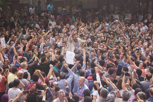 وأشار الى أنه "فى يونيو منذ 25 عاما، توحدنا وقاومنا وانتصرنا لكرامتنا وكرامة المهنة ورفضنا العدوان على الصحافة.. واليوم لا يمكن أن نقبل أن يساومنا أحد على حقوق انتزعها المصريون باستحقاقات الدم، وعلى حريات ليست منة أو فضلا من أحد، أو أن يوقع بنا فى كمين زرع فتنة المعايير".