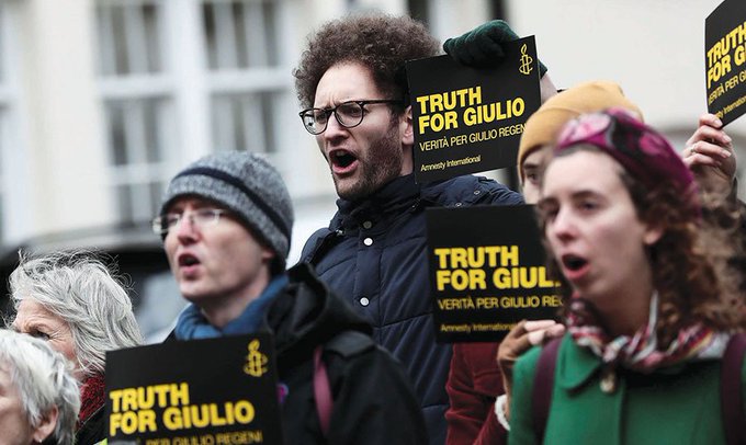 وطلب والدا جوليو ريجيني أن "يكون هناك تطبيق للقوانين الإيطالية والأوروبية التي تحظر تصدير السلاح للدول التي تنتهك حقوق الإنسان, موقفنا مهم لأن البديل عن ذلك سيكون هو حياة بلا أمان للإيطاليين في الخارج إذا لم يحاسب من قتلوا جوليو ريجيني".