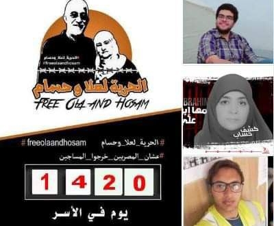 وقبل أيام كتب الشاعر عبدالرحمن يوسف عبر حسابه على تويتر: "النهاردة فات 1420 يوم على اعتقال علا وحسام !1420.. سجن بلا ذنب.. ولا جريمة.. ولا محاكمة.. ولا زيارة.. 1420 يوم انتقام شخصي.. وتصفية حسابات سياسية.. 1420 يوم اعتقال بلا أي حقوق حتى طبقا للائحة السجون المصرية ، متى تنتهي هذه المأساة"؟