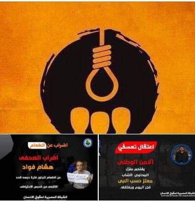 إلى ذلك يواصل المعتقل الصحفي هشام فواد إضرابه عن الطعام لتجاوز فترة حبسه الحد الأقصى من الحبس الاحتياطي عامين منذ يوم السبت الماضي 10 يوليو الجاري.