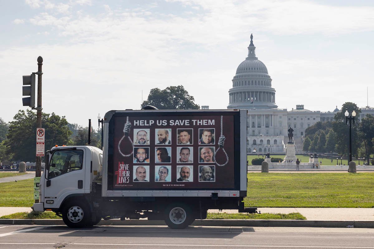 وخلال عطلة نهاية الأسبوع، قادت منظمة "مبادرة الحرية" التي تتخذ من الولايات المتحدة مقرا لها، شاحنة عبر واشنطن العاصمة وشمال فيرجينيا تحمل صورا لوجوه السجناء السياسيين الاثني عشر الذين أصبحوا معروفين باسم رابعة 12، وكُتب في الأعلى جملة "ساعدونا على إنقاذهم".