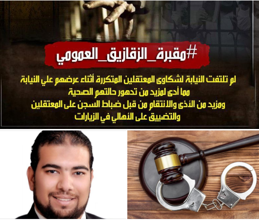 ووثق المركز شكاوى أهالي سجن الزقازيق العمومي؛ بسبب ما يتعرض له ذووهم داخل السجن من تعذيب ممنهج وانتهاكات تحت إشراف مباحث السجن والضابط أسامة العطار وشريف نخنوخ وقوة السجن.