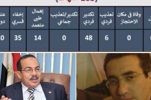 وشملت الانتهاكات 14 حالة إهمال طبي و6 من حالات التعذيب الفردي و48 حالة تكدير فردي و35 حالة إخفاء قسري و10 حالات عنف للدولة.
