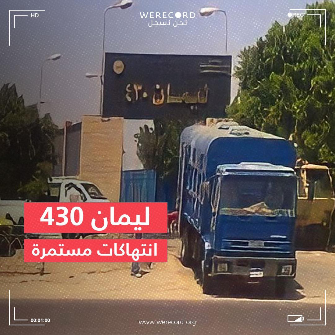 ووثقت قيام ضباط من قطاع الأمن الوطني رفقة قوة أمنية من قطاع الحماية المجتمعية "مصلحة السجون" بالتنكيل بسجناء ليمان 430 في وادي النطرون يوم الأحد الماضي.