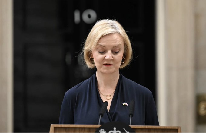 ولفتت حسابات إلى أنه بعد ساعات قليلة من ظهورها أمام البرلمان لترد بكل ثقة على من طالبها بالاستقالة قائلة "أنا محاربة ولن أستسلم" أعلنت ليز تراس رفع الراية بتقديم استقالتها من منصبها لتصبح أقل رئيس وزراء خدمة في تاريخ بريطانيا .