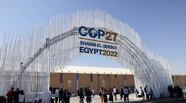 يعقد مؤتمر COP27 في مركز مؤتمرات شرم الشيخ الكبير. وكما هو الحال في مؤتمرات الأطراف السابقة، يمكن فقط للمندوبين الرسميين المعتمدين من الأمم المتحدة دخول المكان، المعروف باسم المنطقة الزرقاء، والتي تعتبر خلال الاجتماع أراضي تابعة للأمم المتحدة وتخضع للقانون الدولي.