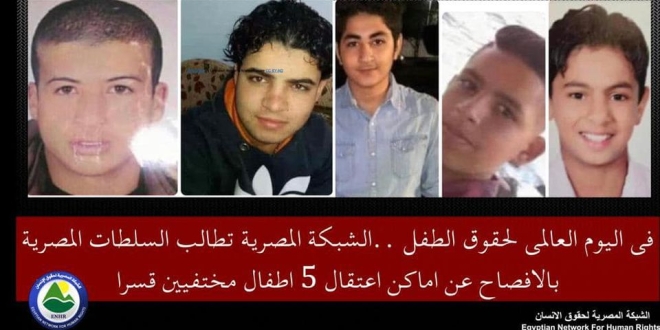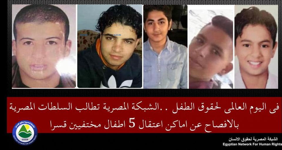 بالتزامن مع اليوم العالمي لحقوق الطفل، طالبت الشبكة المصرية سلطات نظام السيسي المنقلب بالإفصاح عن أماكن اعتقال 5 أطفال مختفيين قسرا واحترام حقوق الطفل والاتفاقية المتعلقة بها ، والتي قامت جمهورية مصر العربية بالتوقيع والتصديق عليها.