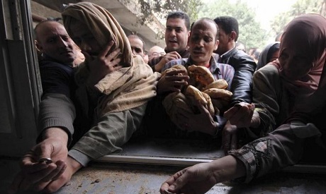 People queue for bread at a bakery in Cairo March 2, 2014. REUTERS/Al Youm Al Saabi Newspaper