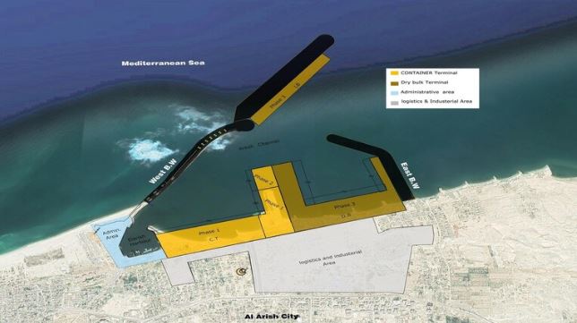 ونقلت وسائل الإعلام الصهيوني ، ومنه موقع "بورت تو بورت" الإخباري المتخصص في شؤون النقل والمواصلات، عن وليد جمال الدين رئيس الهيئة العامة للمنطقة الاقتصادية لقناة السويس تصريحاته للصحافة المصرية: "إن الأعمال في المرحلة الأولى من تطوير ميناء العريش ستنتهي نهاية العام الجاري، وهناك تعاونا مع عدة جهات تبدي اهتماما بالمشروع بفضل المزايا التي يوفرها الميناء البحري وموقعه".