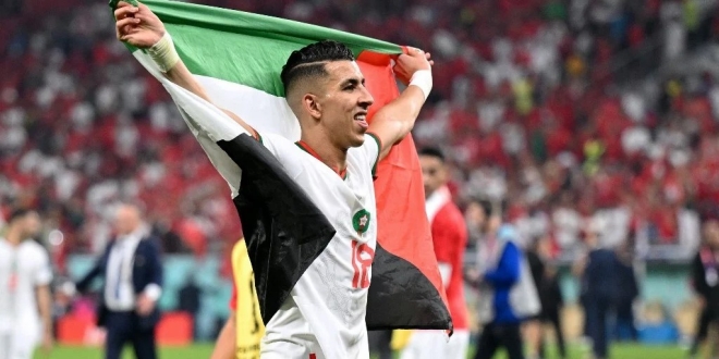 وحمل العديد من اللاعبين المغاربة العلم الفلسطيني بعد الفوز، في حين أن المشجعين في الملاعب رفعوا أيضا الأعلام تضامنا مع الفلسطينيين، إن رمزية قيام لاعبي كرة القدم بذلك على أرض الملعب بعد المباراة مهمة للغاية.